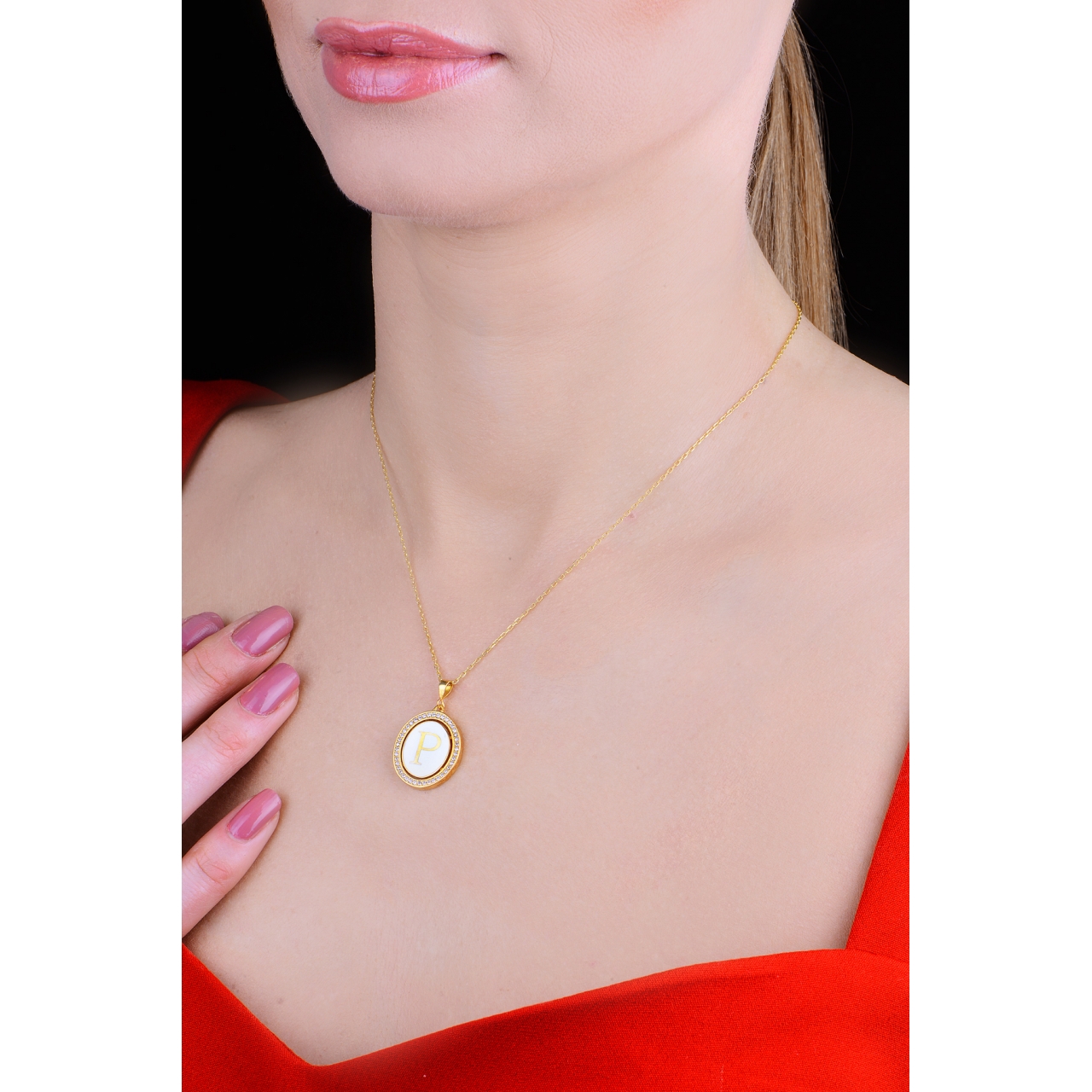 925 sterling silver “P” letter necklace, yellow gold-plated