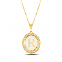 925 sterling silver “R” letter necklace, yellow gold-plated