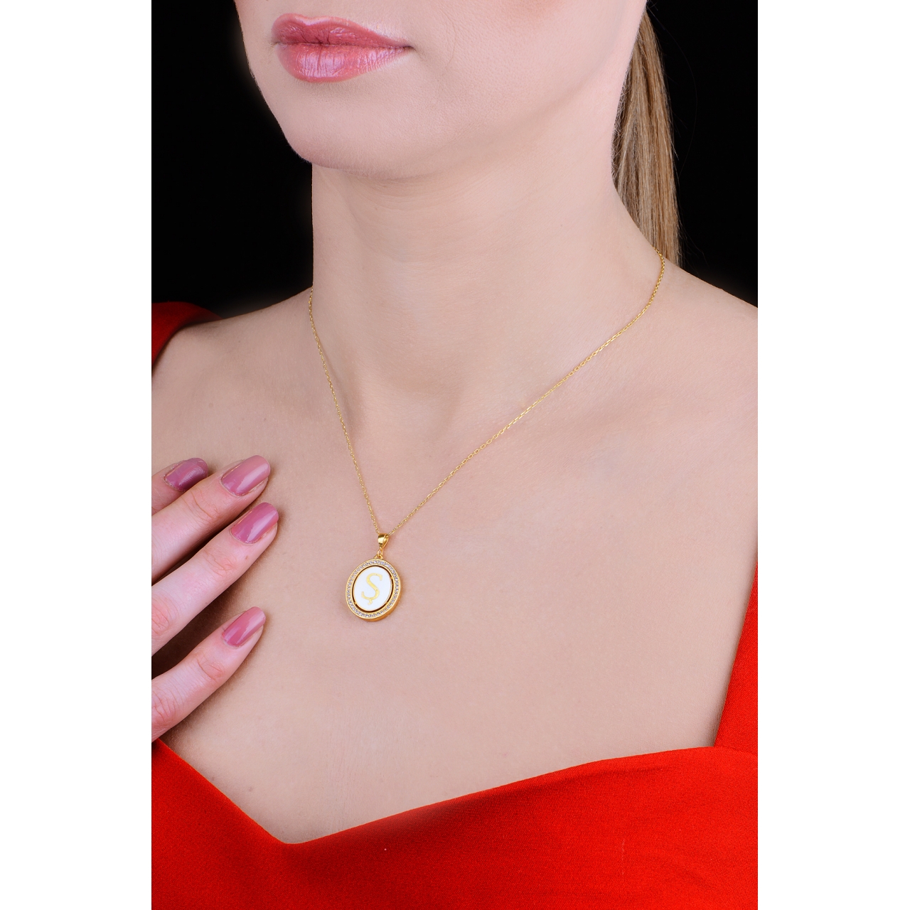 925 ayar gümüş “Ş” harf kolye, sarı altın kaplama