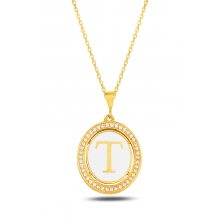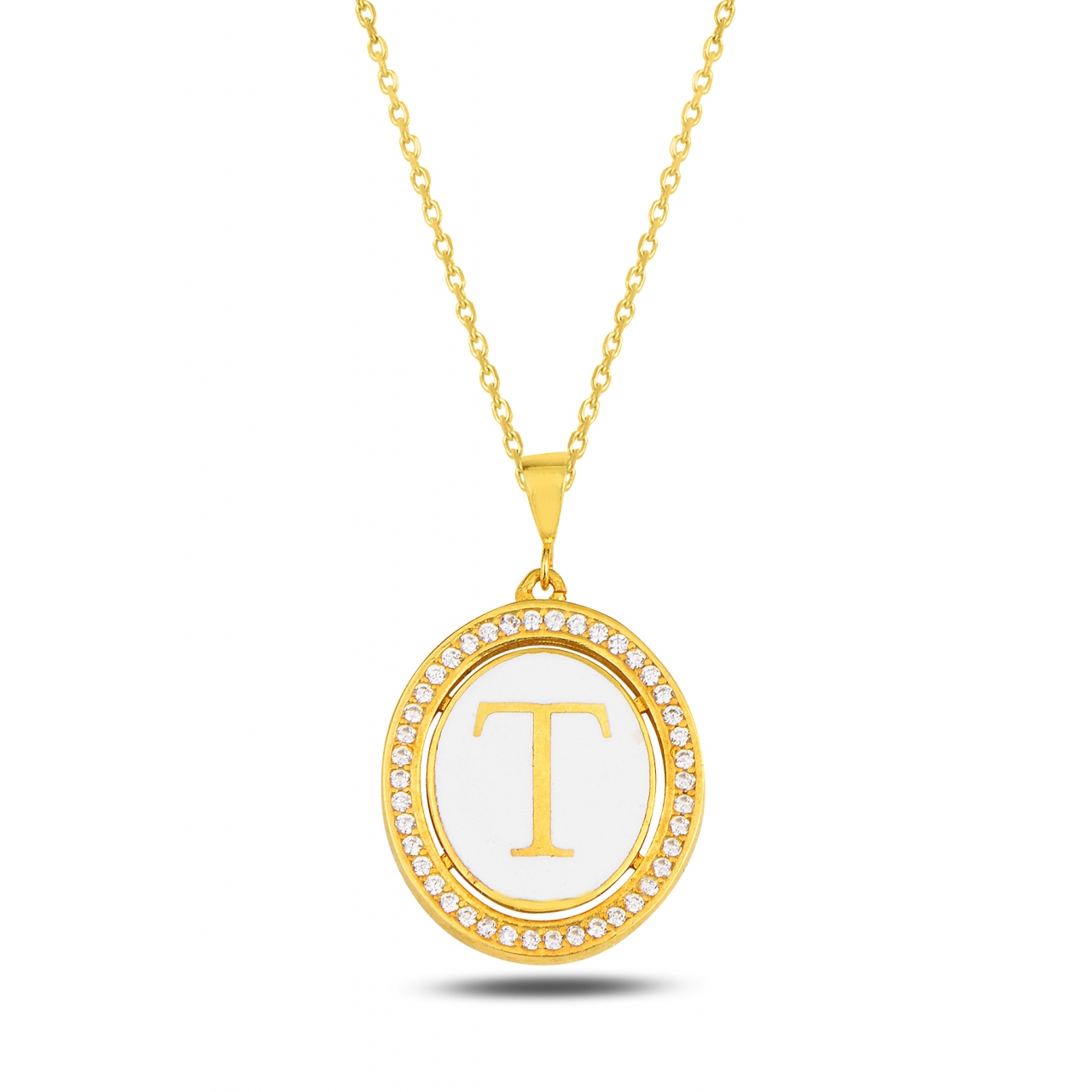 925 sterling silver “T” letter necklace, yellow gold-plated